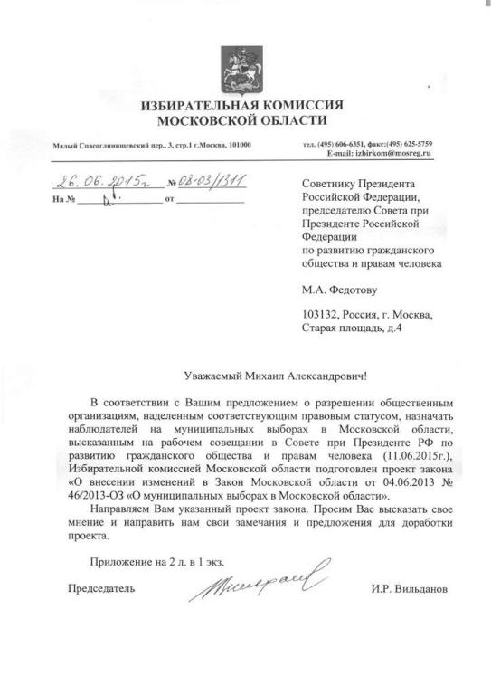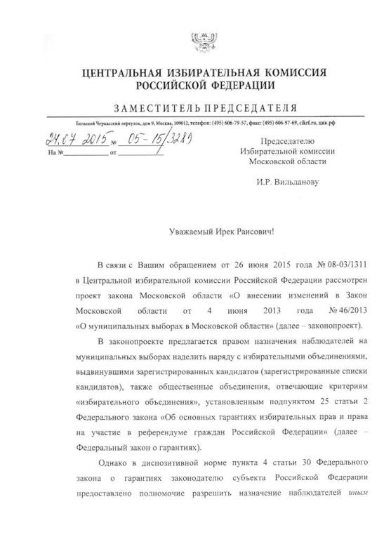 Позиция Центральной избирательной комиссии Российской Федерации по поводу законопроекта Мособлизбиркома